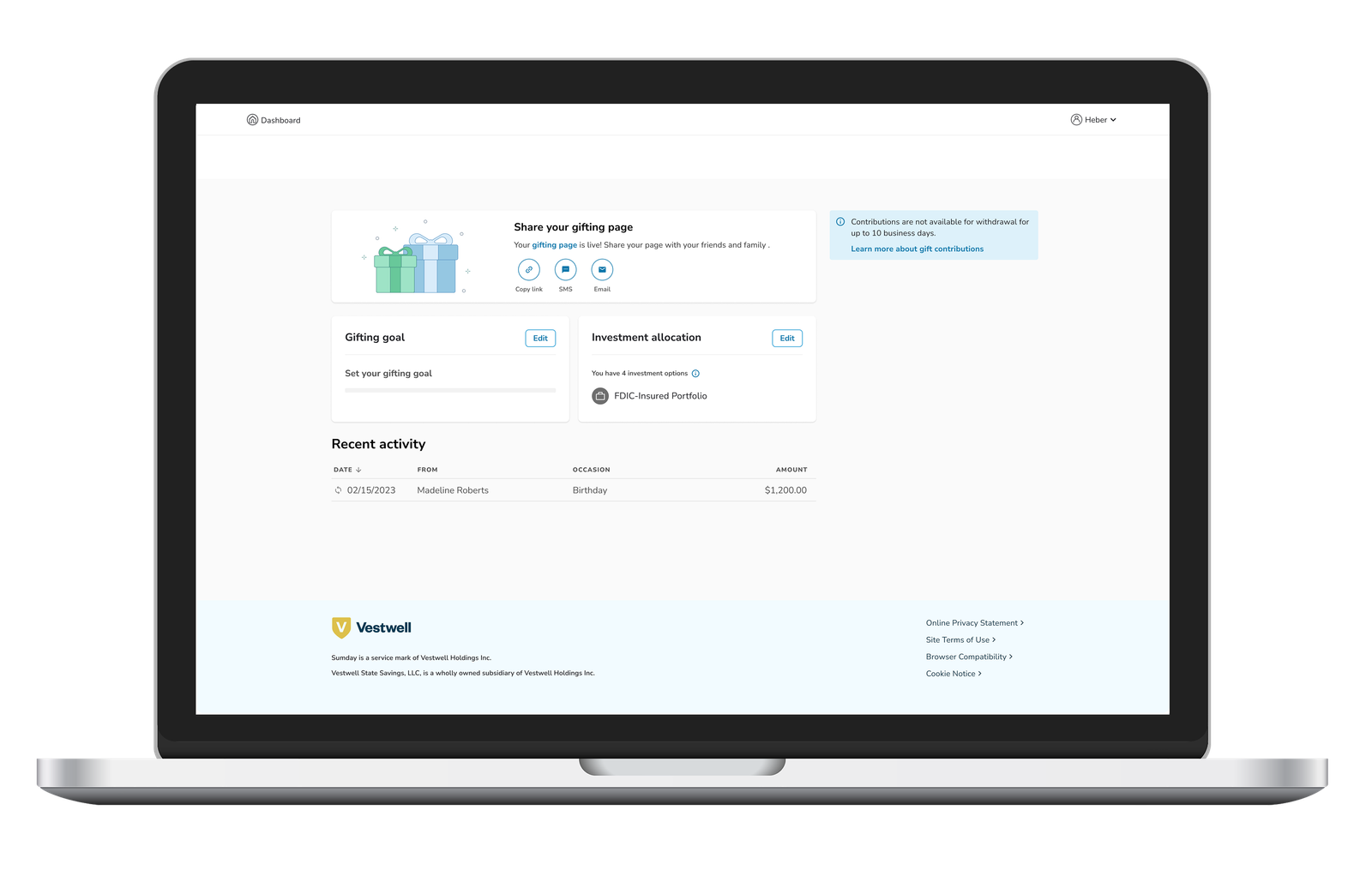 Friends and family can easily make contributions directly to your account online — for birthdays, holidays, or just because.